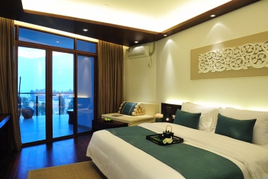 除了常規(guī)的酒店客房,整個度假酒店還有印尼風情巴厘島、南洋風情圣淘沙、泰式風情普吉島三個私家別墅區(qū)。別墅是3室2廳構(gòu)造的房子,一共有2間大床房和1間標間,雖然看不見海,但是別致的園林設計更容易讓人產(chǎn)生置身東南亞的錯覺,每套別墅都有花園、廚房、會客廳,部分還配有獨立泳池,非常適合一家老少出行或者朋友聚會開party。