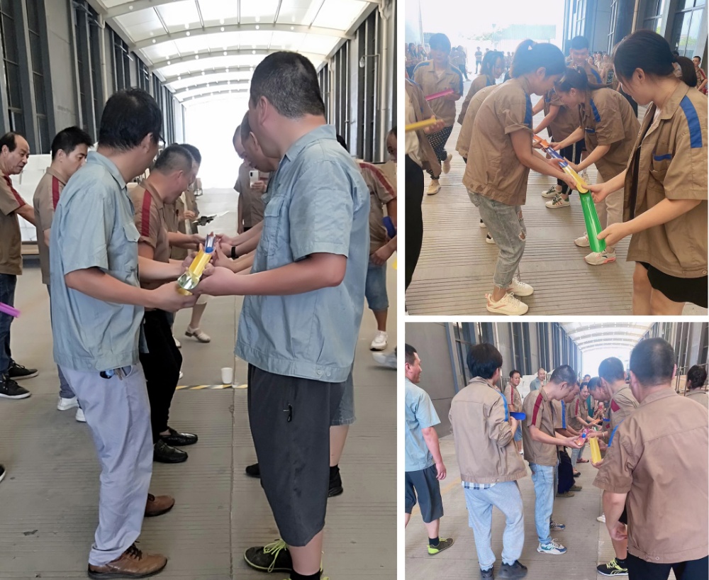 這是一場爭分奪秒、講究合作的極限突破活動,要求所有人必須以最快的速度搭建一個高效的梯隊,去完成一項“偉大”的任務(wù),考驗的不僅是耐力,還有團隊成員之間的互助、支持與合作。隨著“比賽開始”的口令,大家熱情高漲,隊員們齊心協(xié)力,默契配合,小球在圓管中飛快地轉(zhuǎn)動著身子,員工們縱情地投入著、激情地呼喊著。通過激烈角逐,成品車間代表隊以較好的協(xié)作能力和靈活的團隊戰(zhàn)術(shù)獲得第一名。