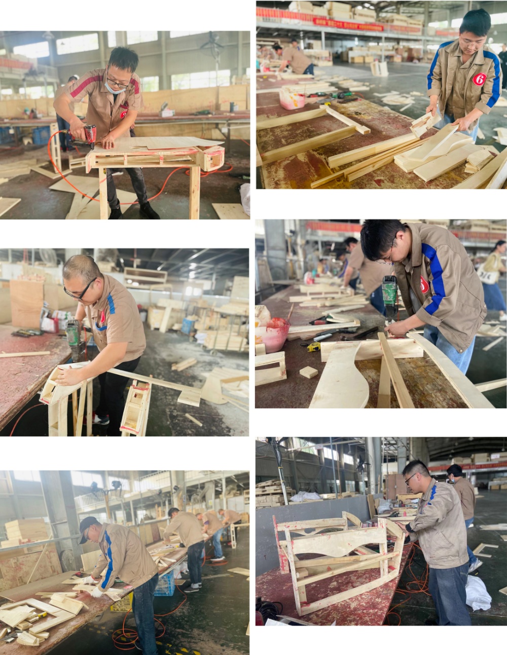 “咔嚓,咔嚓”,下午1:30,車間里頓時響聲一片,20多名參賽者在兩側(cè)工作臺邊進行激烈“開戰(zhàn)”,這是10月12日發(fā)生在海寧恒森家具有限公司里緊張但有序的一幕。
