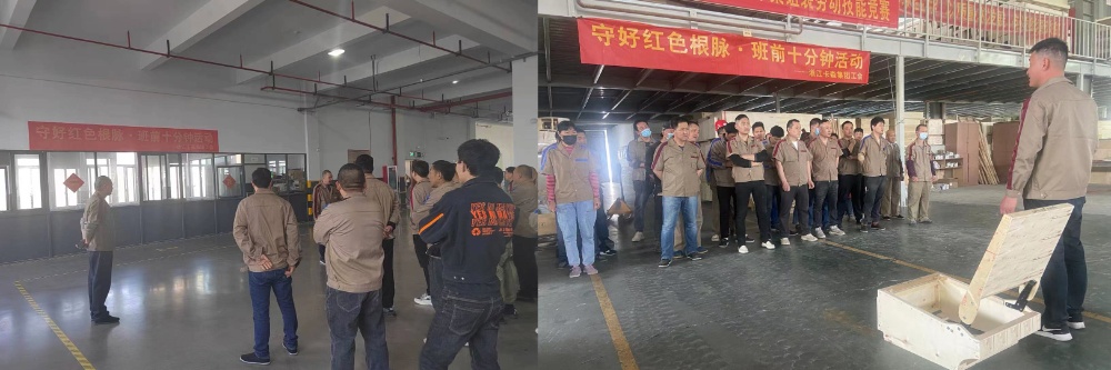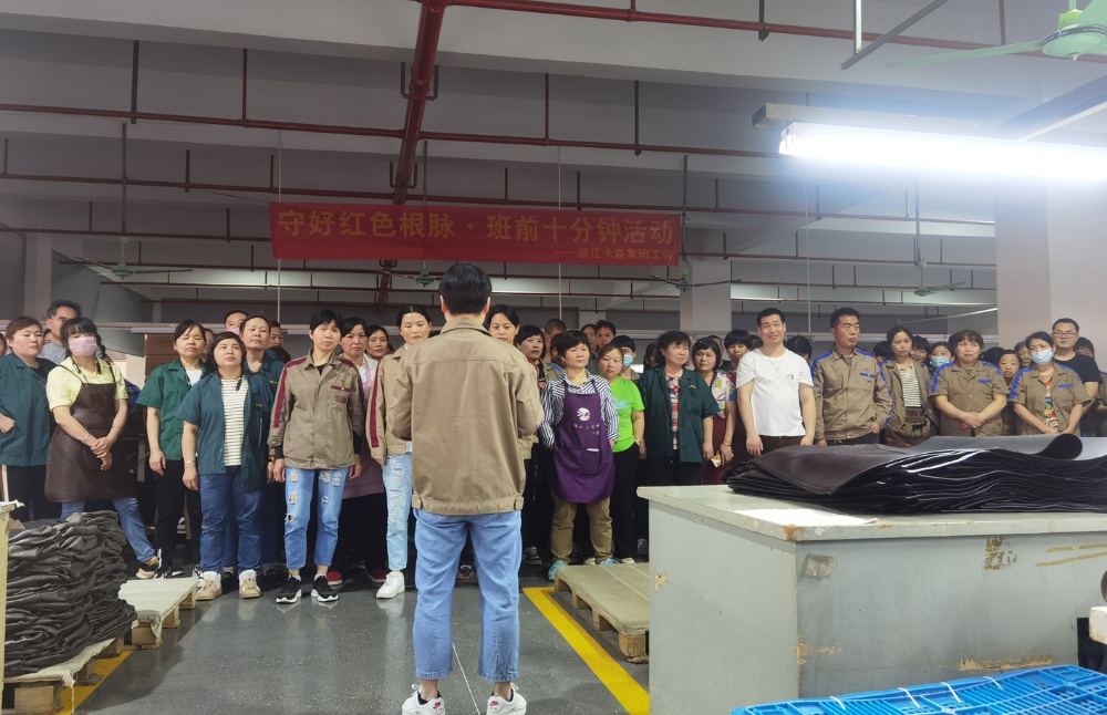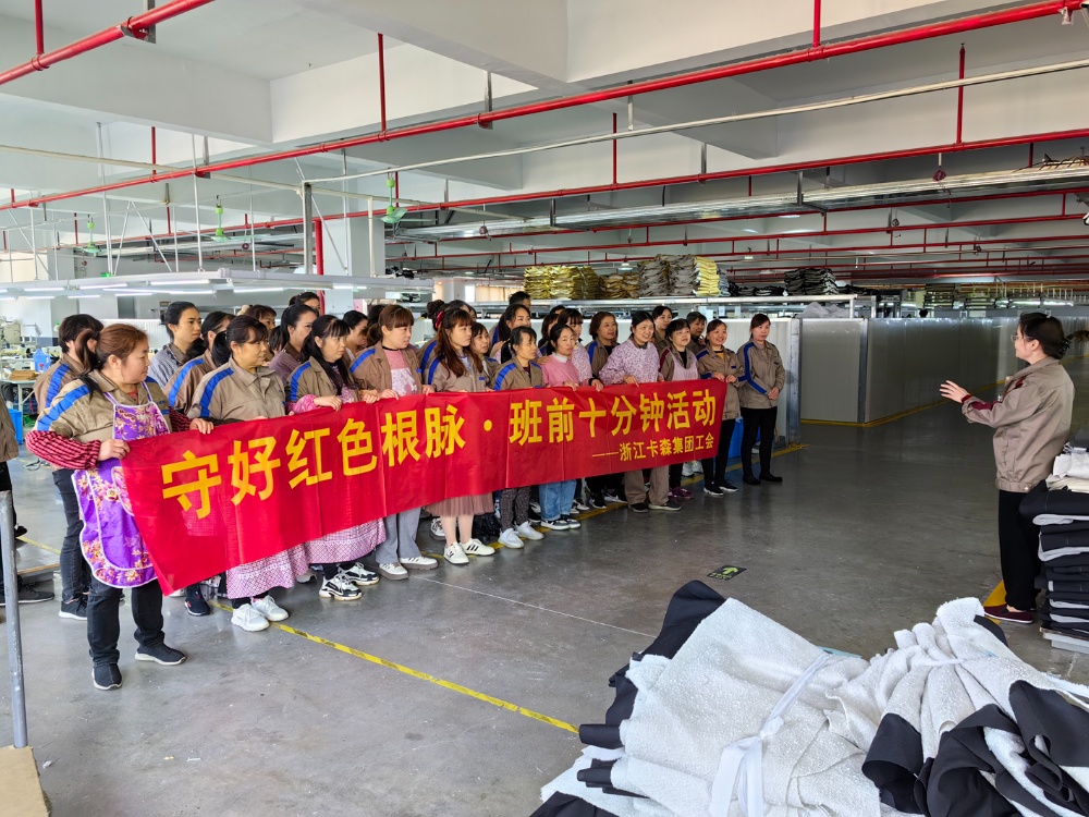 近段時間以來,卡森集團工會根據(jù)市、鎮(zhèn)總工會“守好紅色根脈·班前十分鐘活動”的工作部署,在集團黨委的組織帶領下,號召各子公司全面興起“班前十分鐘”活動,為把黨的思想精神、奮斗目標和方針政策傳達貫徹到基層員工心中,鞏固夯實共同富裕的思想基礎,奮力打造員工精神共富的品質(zhì)企業(yè)。