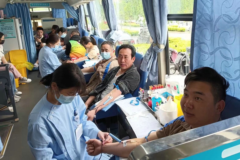 5月12日,在斜橋鎮(zhèn)政府會議中心的獻血現(xiàn)場,有一群特別亮眼的人,他們大部分穿著恒森卡其色的工作服,有序地流動在獻血的各個點上,填表登記、測量血壓、抽血化驗,而后勇敢地擼起袖子獻出殷紅的熱血。