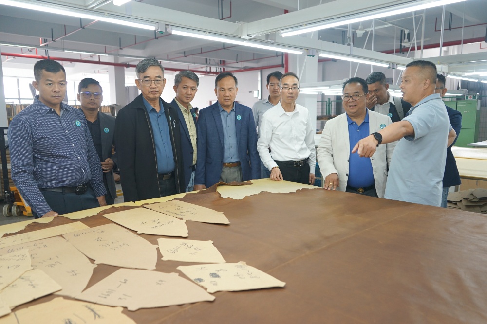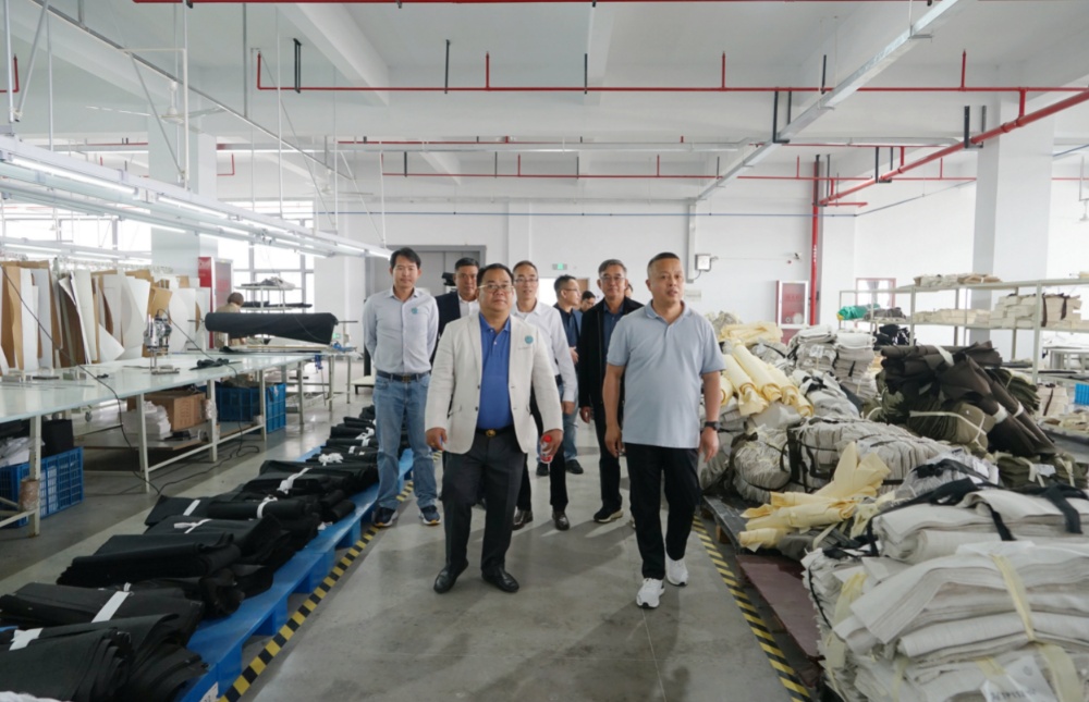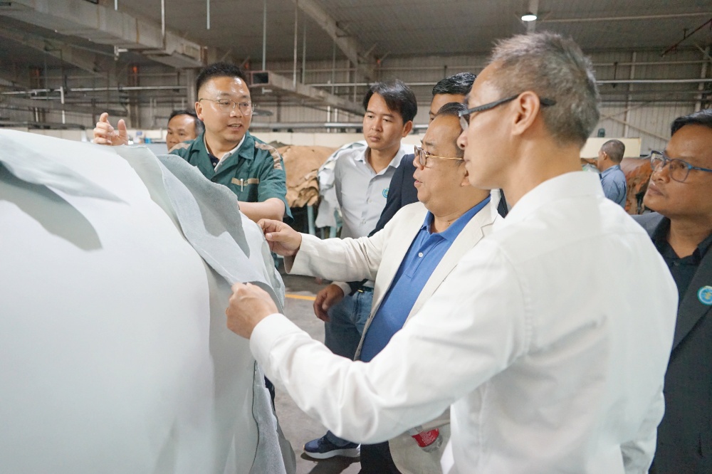 隨后,訪問團一行到斜橋工廠區(qū)進行參觀訪問。在漢林沙發(fā)有限公司,總經(jīng)理朱建林帶大家參觀了沙發(fā)制造車間和成品車間;在制革事業(yè)部,副總經(jīng)理謝柏?zé)槑ьI(lǐng)大家參觀了皮革制造車間。