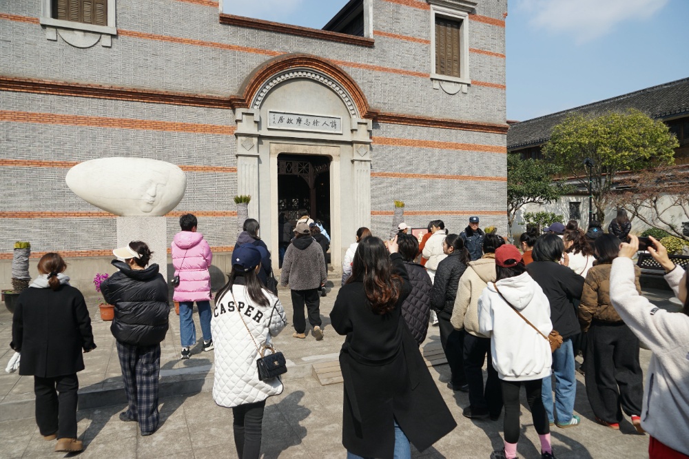 步履輕盈如行云流水,魅力綻放似春風(fēng)拂柳。下午1點(diǎn)半,大家相約在中絲三廠文創(chuàng)園集合,隨后沿著塘河一路往北,來(lái)到干河街歷史街區(qū),參觀徐志摩故居。