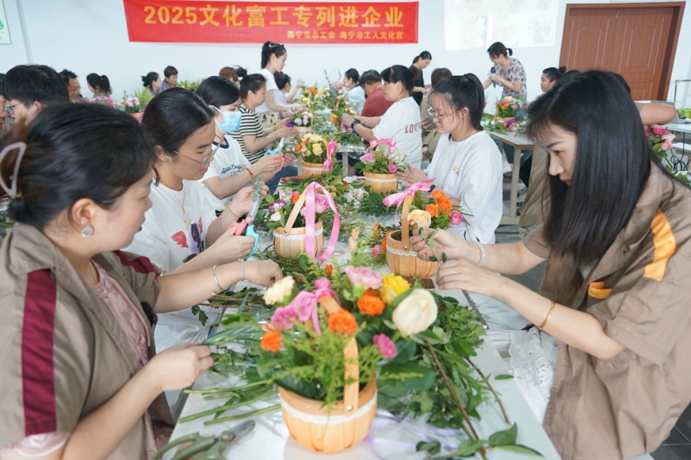 接著是“‘愛在四季?工會(huì)有約’公益培訓(xùn)”——插花活動(dòng),由專業(yè)的插花老師現(xiàn)場授課教學(xué)。老師從插花的基本技巧、花材選取、顏色搭配、審美構(gòu)圖等逐一講授,并同步演示了插花全過程。大家發(fā)揮自己的想象,用心構(gòu)思、精心創(chuàng)作,在一修一剪之間,一件件細(xì)致精美、別出心裁的插花作品逐漸呈現(xiàn),沁人心脾。聞著花香,交流著心得,看著一束束原本普通、零散的花朵變成了精致的藝術(shù)作品,每個(gè)人的臉上洋溢著滿滿的成就感和幸福感。