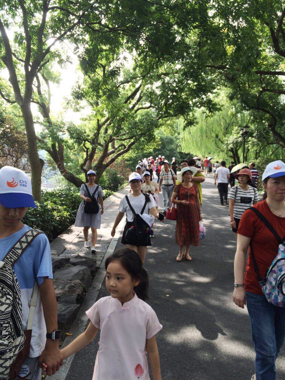 一下車,大家漫步來到了西湖邊,走在蘇堤上,紛紛感慨:西湖不愧是人間天堂啊!整個一座湖就像一面大鏡子,倒映著湖邊的美景,照出了大家歡樂的心聲。湖堤兩岸長滿了柳樹,柳樹依舊像春天那樣充滿著蓬勃的生命力,枝條長得已經(jīng)垂到了湖面,宛如一個美麗的少女正在清洗她那長長的黑發(fā),微風乍起,柳枝擺動,仿佛是風在彈奏悠揚的豎琴,也仿佛在歡迎我們恒森一家人的到來。在這如此美的景色下,有的員工拿出手機拍照留念,有的員工結伴倚在湖邊的長凳上,相互聊天拉家常。