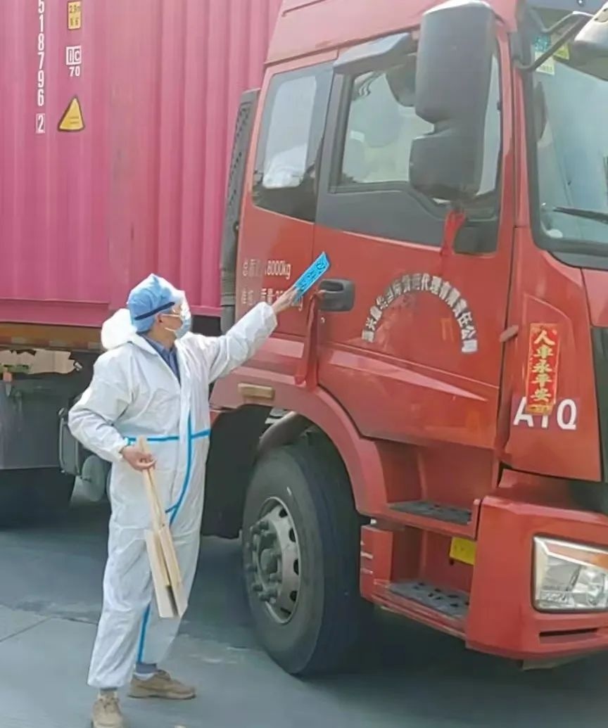 凡進(jìn)入廠區(qū)的集裝箱及來廠裝貨車輛,都要求掃“嘉行碼”及行程碼查看(嘉興市外來返斜橋的進(jìn)行登記),并測(cè)體溫登記,駕駛證、車牌號(hào)碼、身份證號(hào)碼、進(jìn)廠時(shí)間、離廠時(shí)間等都要求填寫完整記錄。(由于貨車封閉管理所有駕駛員信息由單證部反饋管理部,由保安核對(duì)統(tǒng)一填寫登記,對(duì)嘉興市市外車輛進(jìn)行車門封條張貼)