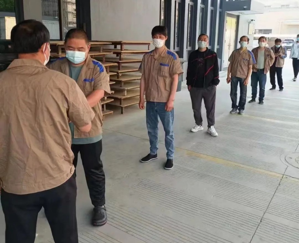 針對(duì)企業(yè)員工,定期配發(fā)口罩,要求每天戴口罩上班,由各部門負(fù)責(zé)人每天對(duì)員工的“嘉行碼”、行程記錄、核酸檢測(cè)情況進(jìn)行檢查;針對(duì)工作環(huán)境,各部門對(duì)車間、辦公室、食堂、衛(wèi)生間等公共區(qū)域每2天進(jìn)行消毒一次,餐廳就餐實(shí)行部門錯(cuò)時(shí)分4批就餐,地上標(biāo)1米外區(qū)間標(biāo)識(shí),有序排隊(duì)自帶餐盆就餐,桌上貼有標(biāo)識(shí),禁止互相聊天,提升文明安全等級(jí)。