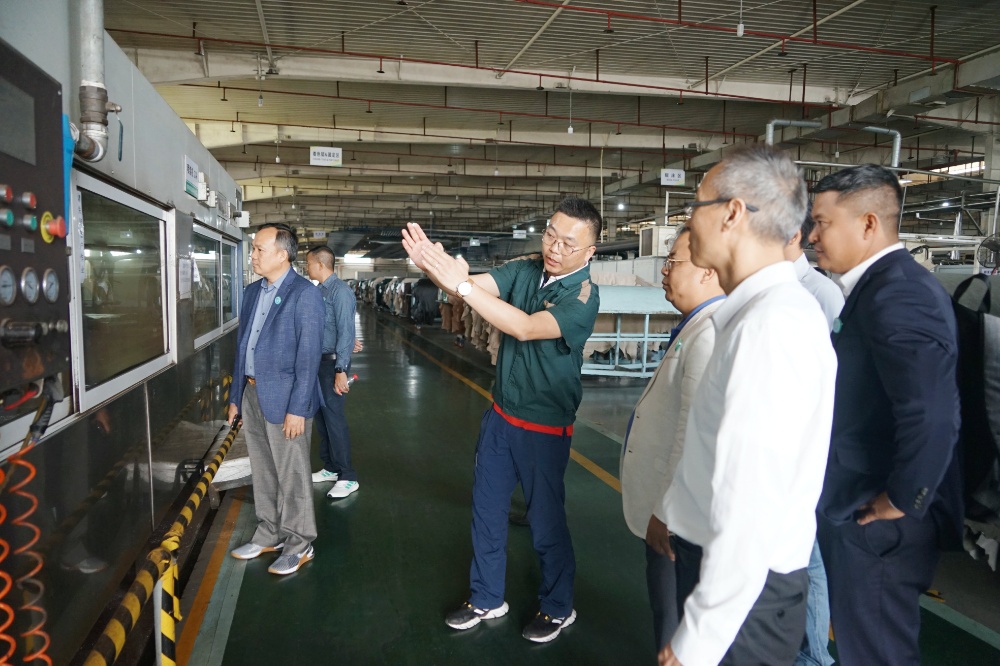 隨后,訪問團一行到斜橋工廠區(qū)進行參觀訪問。在漢林沙發(fā)有限公司,總經(jīng)理朱建林帶大家參觀了沙發(fā)制造車間和成品車間;在制革事業(yè)部,副總經(jīng)理謝柏?zé)槑ьI(lǐng)大家參觀了皮革制造車間。