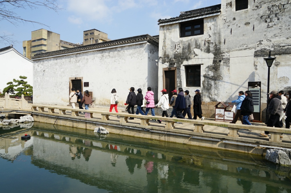 步履輕盈如行云流水,魅力綻放似春風(fēng)拂柳。下午1點(diǎn)半,大家相約在中絲三廠文創(chuàng)園集合,隨后沿著塘河一路往北,來(lái)到干河街歷史街區(qū),參觀徐志摩故居。