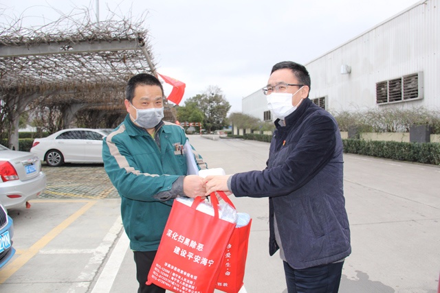 當(dāng)前,抗擊新冠肺炎疫情正處于關(guān)鍵時(shí)刻,各家企業(yè)陸續(xù)迎來(lái)復(fù)工復(fù)產(chǎn)。2月15日,斜橋鎮(zhèn)黨委書(shū)記洪國(guó)清和黨委委員、副鎮(zhèn)長(zhǎng)潘曉國(guó)專程到我集團(tuán)股份二區(qū)工廠慰問(wèn)調(diào)研,了解企業(yè)的開(kāi)復(fù)工情況和碰到的一些問(wèn)題,送上了1000只醫(yī)用口罩和2把測(cè)溫儀。