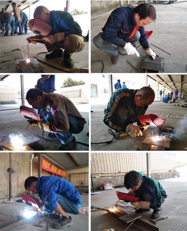 經(jīng)過專業(yè)老師對比賽的要領(lǐng)和規(guī)則講解后,比賽進(jìn)入了激動(dòng)人心的實(shí)戰(zhàn)階段,參賽選手冒著炙熱的高溫,個(gè)個(gè)摩拳擦掌,躍躍欲試。電焊要求手工電弧焊——板對接平焊、單面焊雙面成形,按抽簽順序,5名選手同時(shí)進(jìn)行。