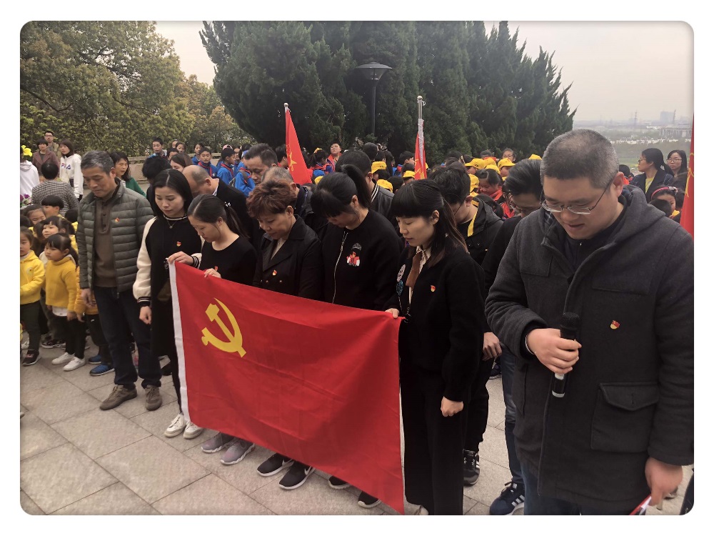 接著,黨員們拾級(jí)而上,一氣呵成來(lái)到了高高在上的紀(jì)念碑前,看到碑上刻著八個(gè)大字:革命烈士永垂不朽。全體黨員在烈士紀(jì)念碑前默哀1分鐘, 由李江東帶領(lǐng)全體人員面對(duì)黨旗鄭重重溫了入黨誓詞,一字一句鏗鏘有力,充分表達(dá)了黨員們團(tuán)結(jié)一致,恪守黨員承諾、彰顯爭(zhēng)創(chuàng)模范黨員的決心。
